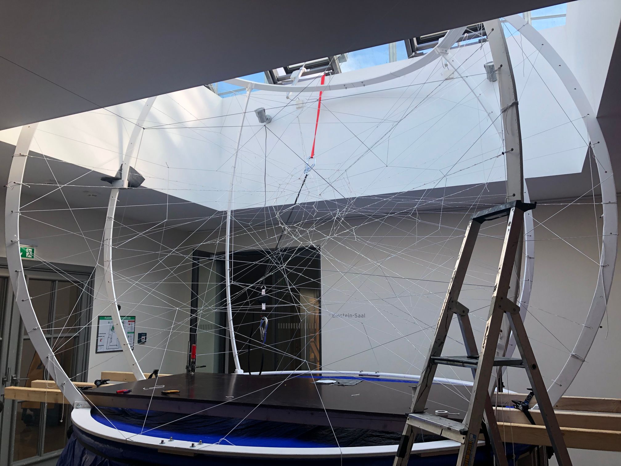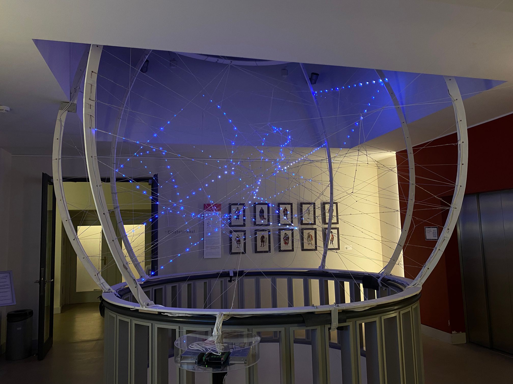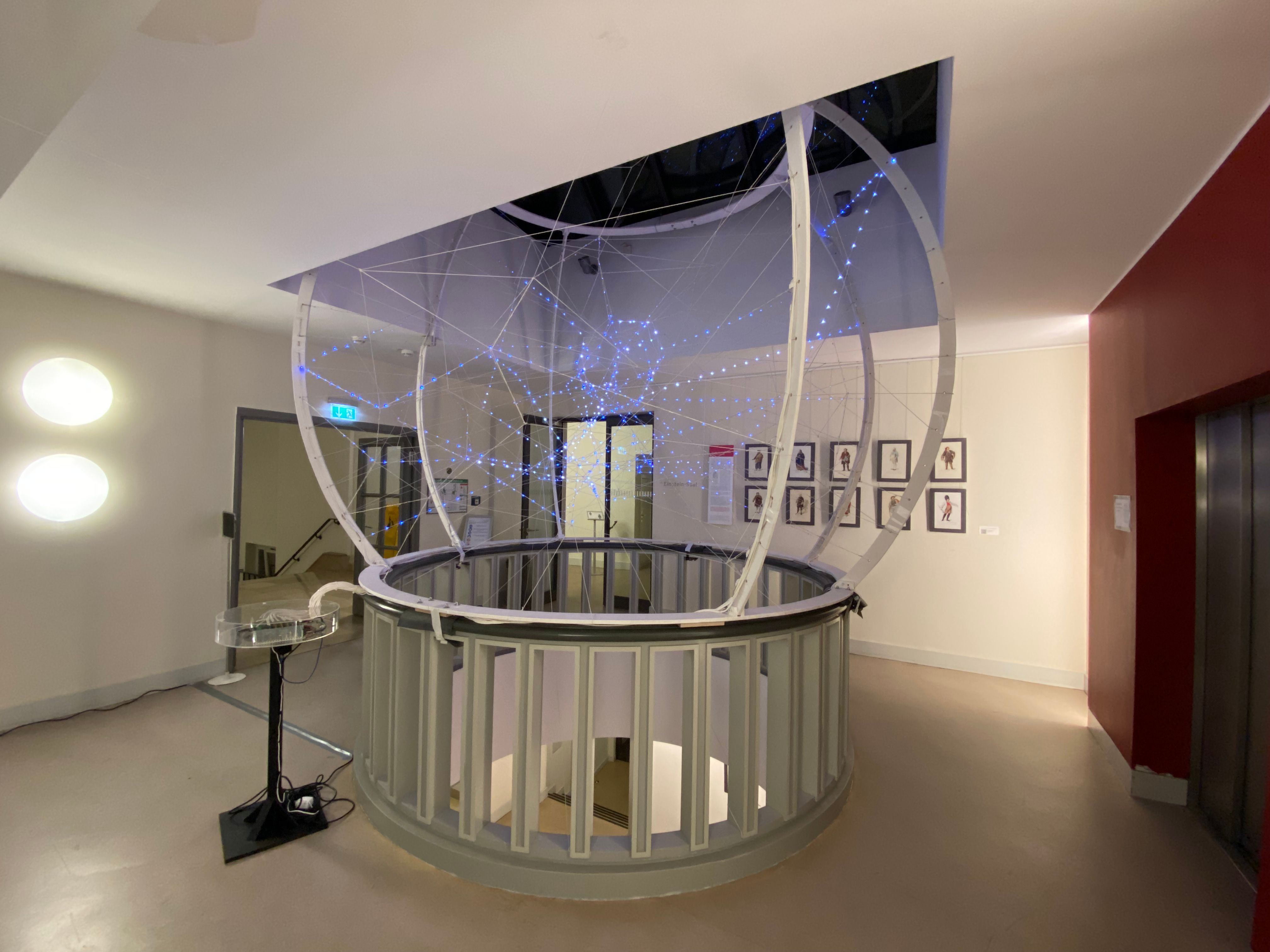 ARTIFICIAL NET is the bachelor thesis project by Hannes Weigel and Niklas Gerstner at ‘Berliner Hochschule für Technik’ - teamed up with Patrick Loibl of ‘spacyal. light design’. The Installation is made from materials such as rope and wood with 1500 LEDs woven into the net as contrast to the organic, lively shape of the installation.